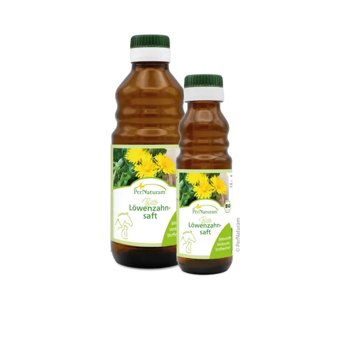 Geben Sie den Bio-Löwenzahnsaft 2 mal täglich über das Futter oder verabreichen Sie ihn direkt mit einer Pipette oder Maulspritze.