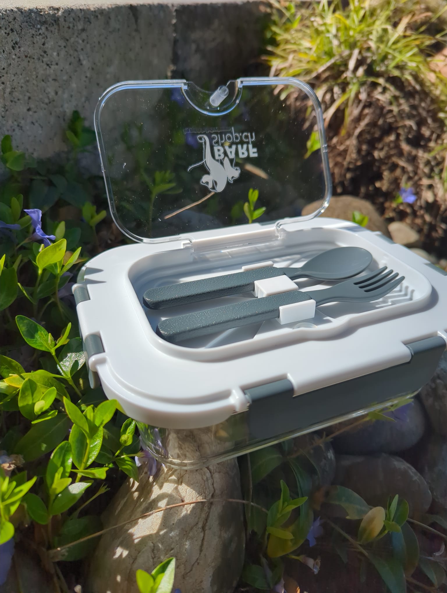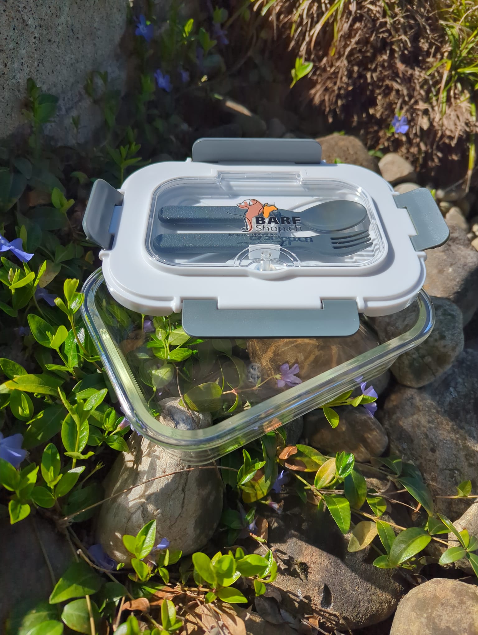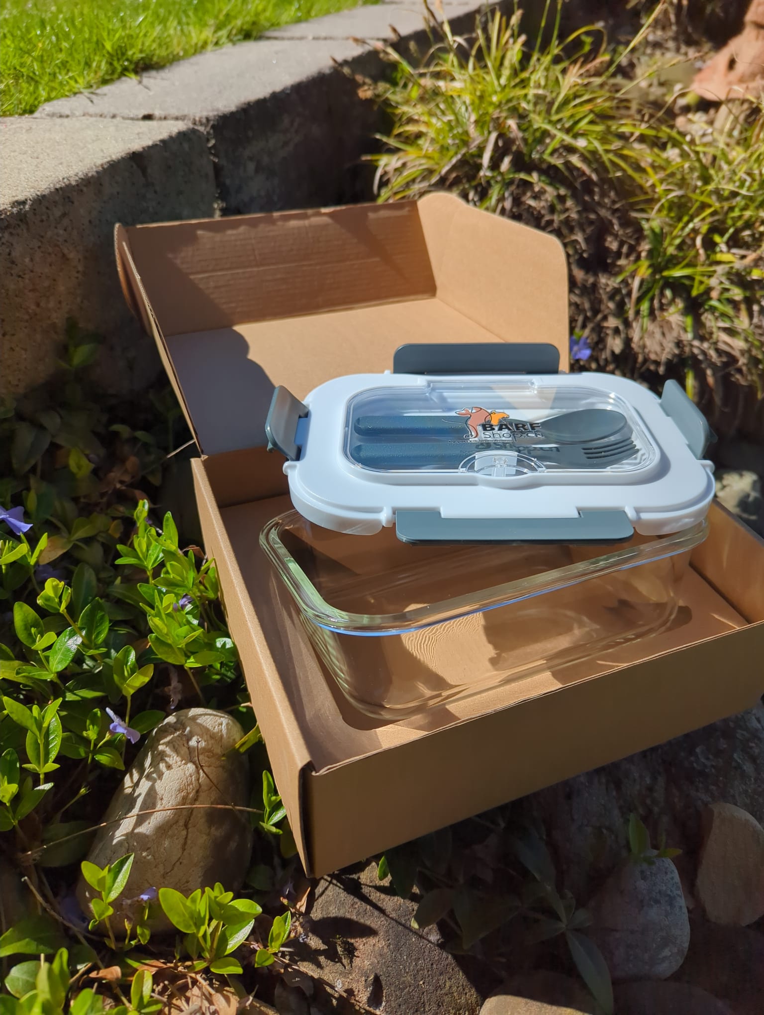 Lunch Glasbox fürs Füttern unterwegs (mit Besteck)